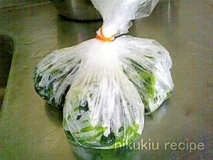 飲食店の現場では当たり前の工夫ですが、ご家庭でも少しの工夫で、いつでも新鮮なほうれん草を活用できます。