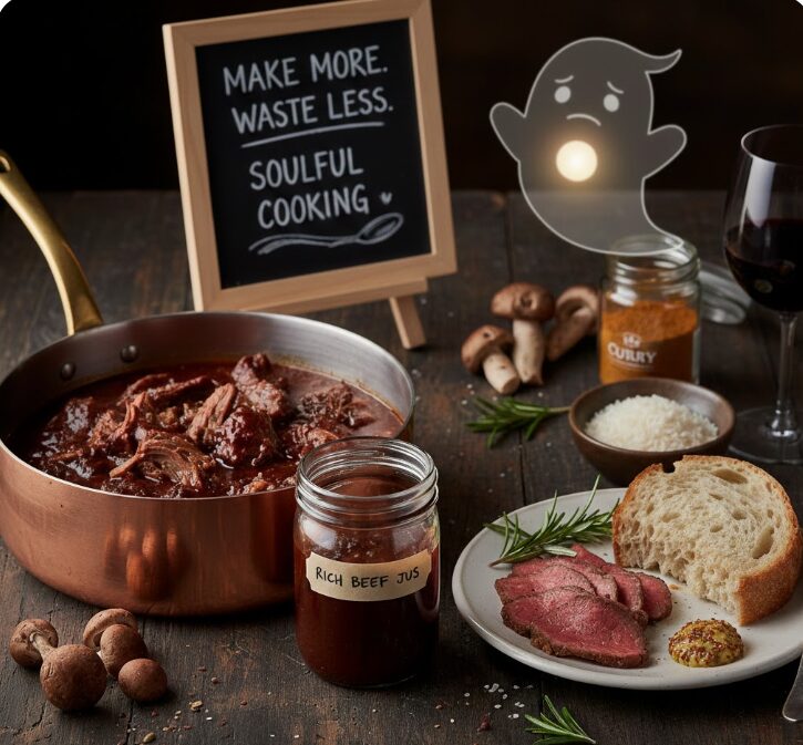 ビーフシチューとして完成させてしまうのではなく、煮込んだホホ肉とソースを別々に管理することで、料理のレパートリーが劇的に広がります。