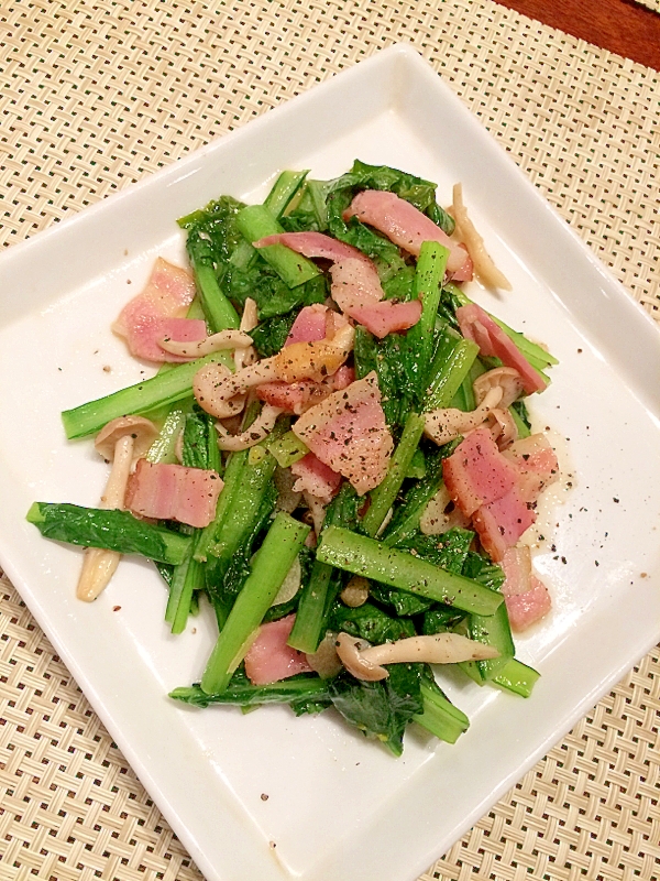 ささっと炒めるだけで絶品!バターの風味が小松菜とベーコンを引き合わせます♪