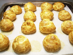しかし、その正体はグリエールチーズ(またはコンテチーズ)を生地にたっぷりと練り込んで焼き上げた、塩味の温かなスナックです。