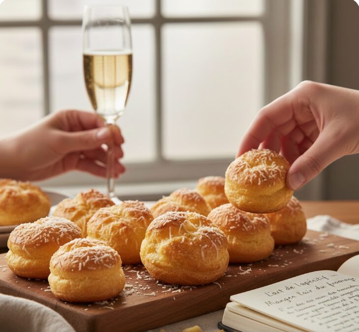 昼下がりの明るい日差しの中で、冷えたスパークリングワインを用意し、焼き立てのグージェールを添える。