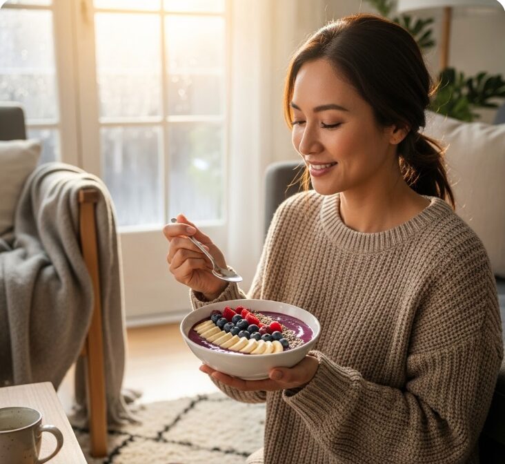 この5日間のプログラムでは、アサイーを「冷やしすぎない」ことが鉄則です。冷凍パルプを使う場合は少し解凍してテクスチャを緩めたり、温かいオートミールに混ぜたり、体を温めるスパイス(シナモンやジンジャー)と組み合わせたりします。これを「ウィンター・アサイー」と呼びましょう。