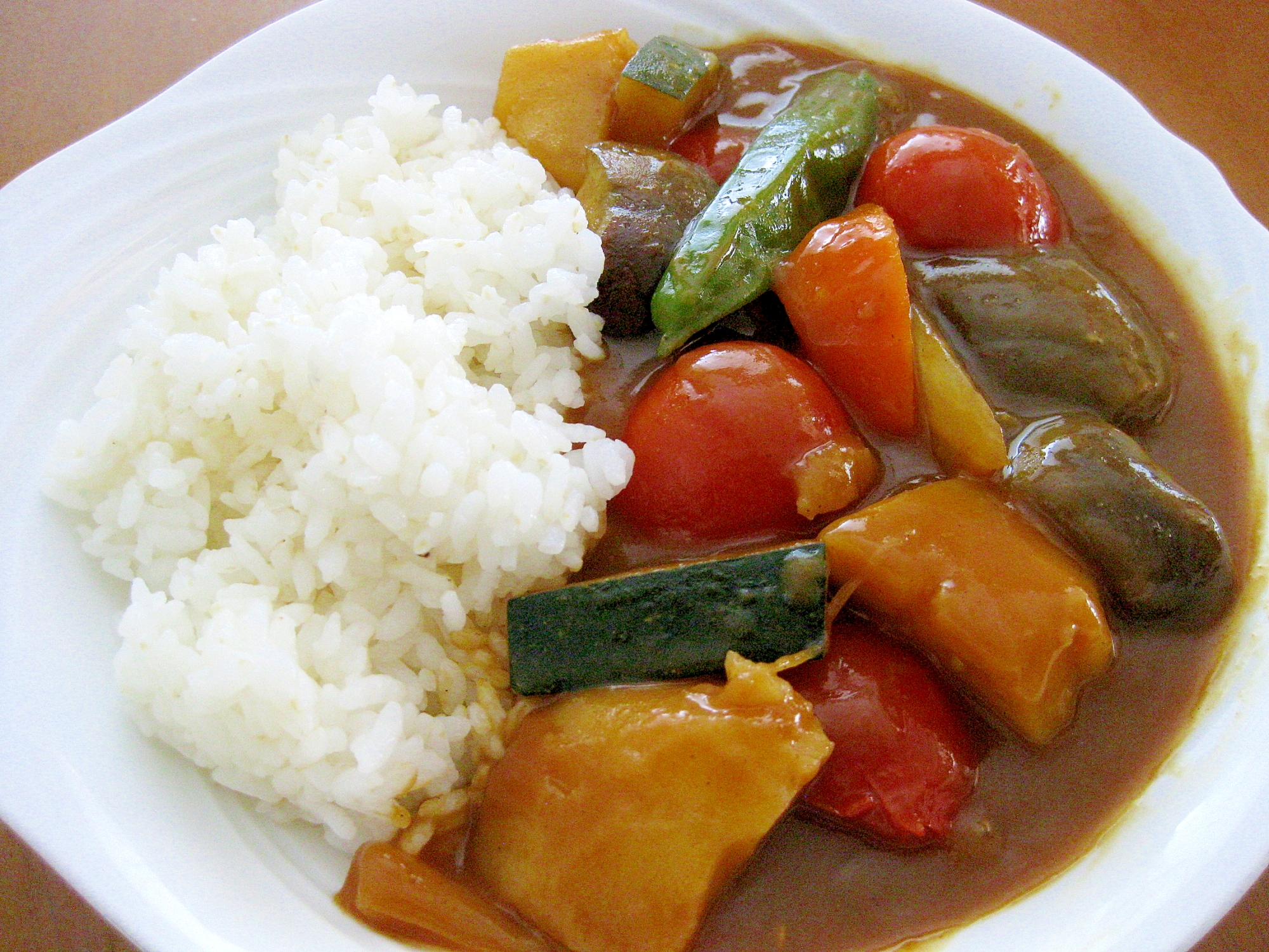 夏野菜カレーは、その名の通り、夏が旬の野菜をたっぷりと使用したカレーです。