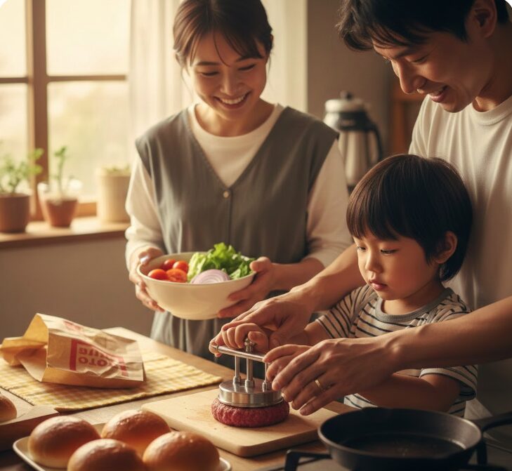 だからこそ、週末に家族全員でキッチンに立ち、ゼロからハンバーガーを作り上げる時間は、昭和のあの頃感じた「ご馳走へのワクワク感」を令和の子供たちに伝える、最高の食育になると考えます。