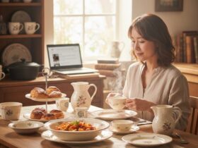 健康的に朝の光と共に。バルコニーで過ごす朝食の夢と朝食ビジネスの未来を考える。
